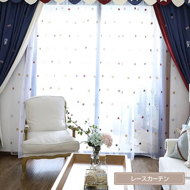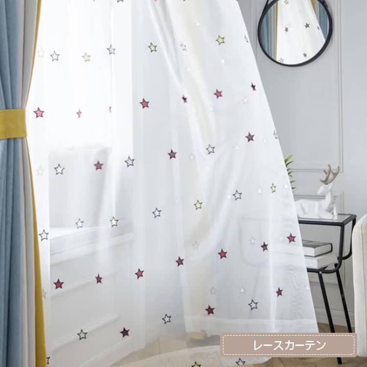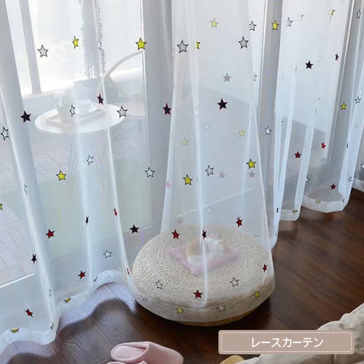 かろやかなレースに、彩り星の刺繍を施しました。風にそよぐと、楽しい時間が流れます。
