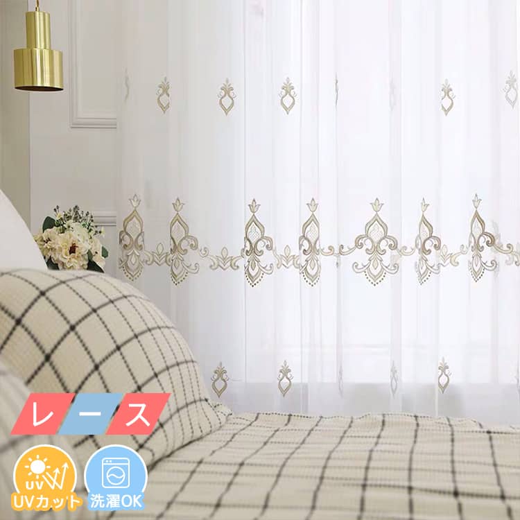透け感が美しい生地と甘い刺繍がエレガントな窓辺を演出してくれます。