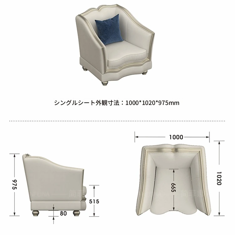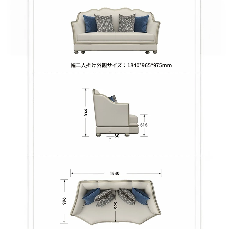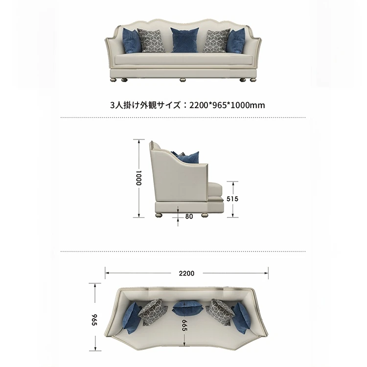 | サイズ | 1人掛け 幅76cm, 1人掛け 幅100cm, 2人掛け 幅184cm, 3人掛け 幅220cm, 4人掛け 幅258m 一体型, 4人掛け 幅258m 分体型 | ||