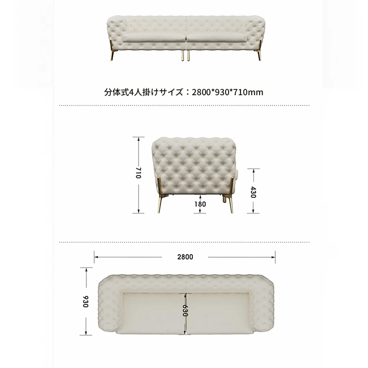 | サイズ | 1人掛け, 2人掛け, 3人掛け, 4人掛け 一体型, 4人掛け 分体型 | ||
