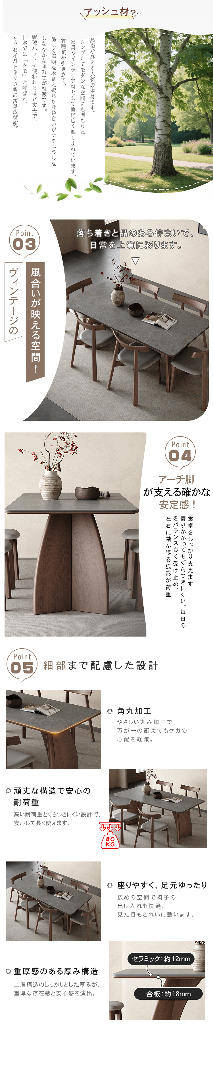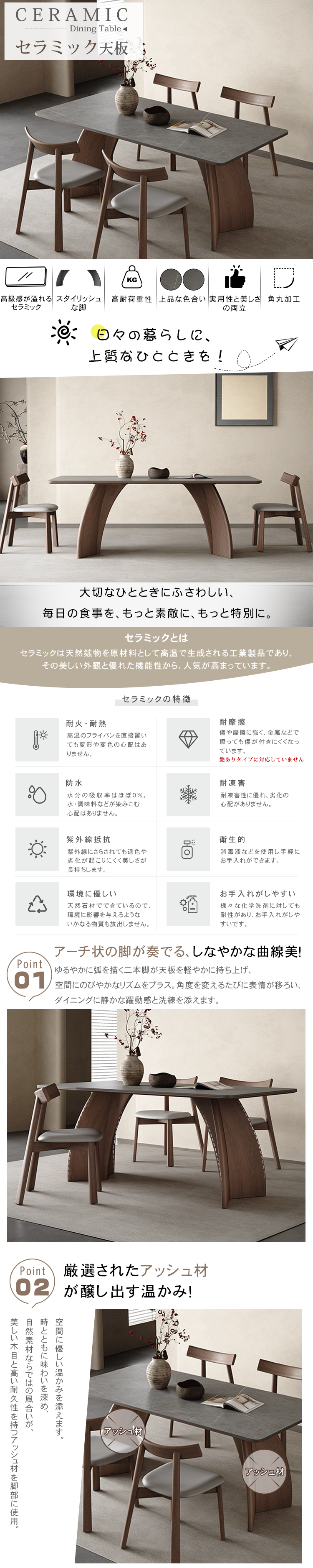 セラミック テーブル ダイニングテーブル キズ・熱に強い 北欧 グレー おしゃれ 無垢材