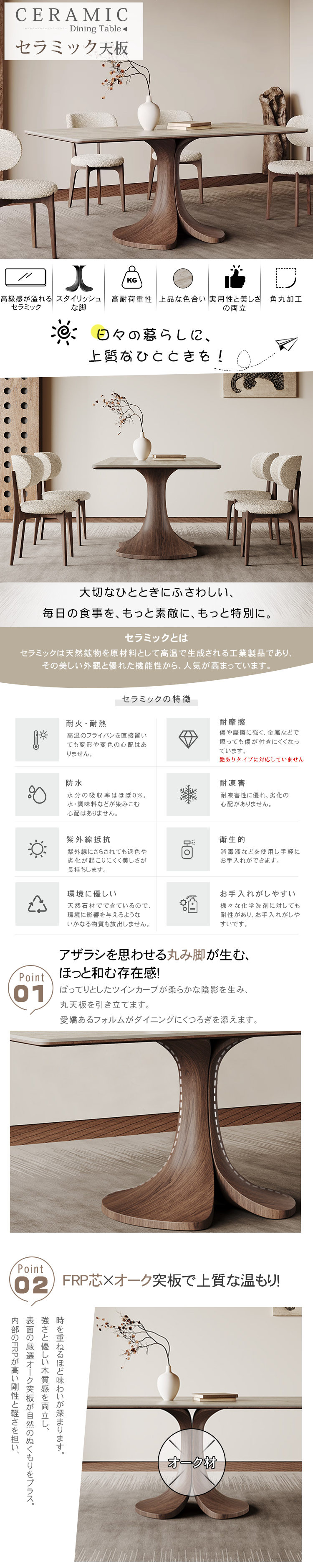 セラミック×無垢材おしゃれテーブル|エレガントデザイン多層板仕様 fjx-2648-table