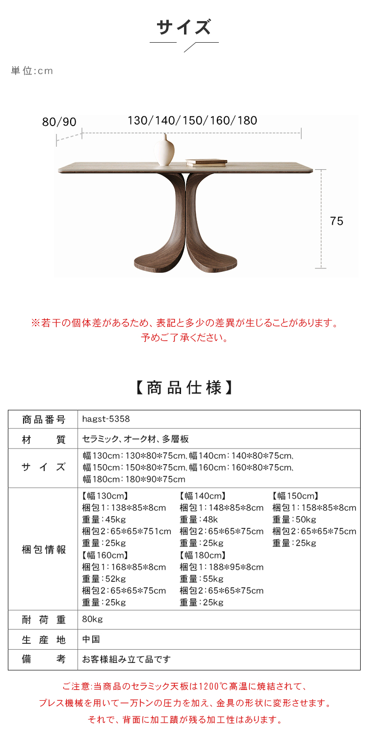 セラミックダイニングテーブル 白 無垢材フレーム 幅1.4m 1.6m 1.8m