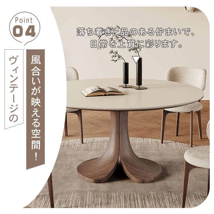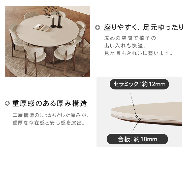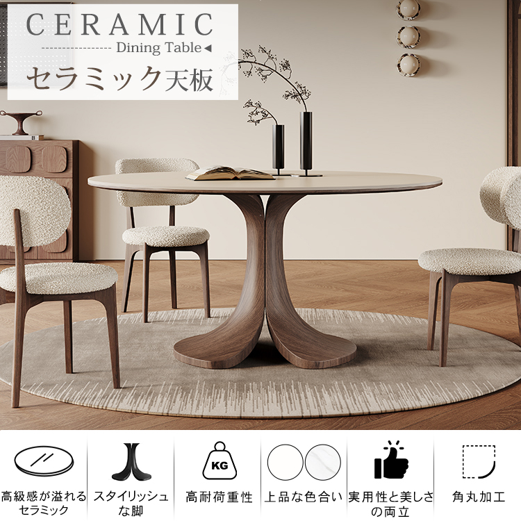 モダンなセラミックテーブル、円形と長方形から選べます。伸縮式で2人から6人に対応。スタイリッシュなデザインでレトロ感も楽しめる。