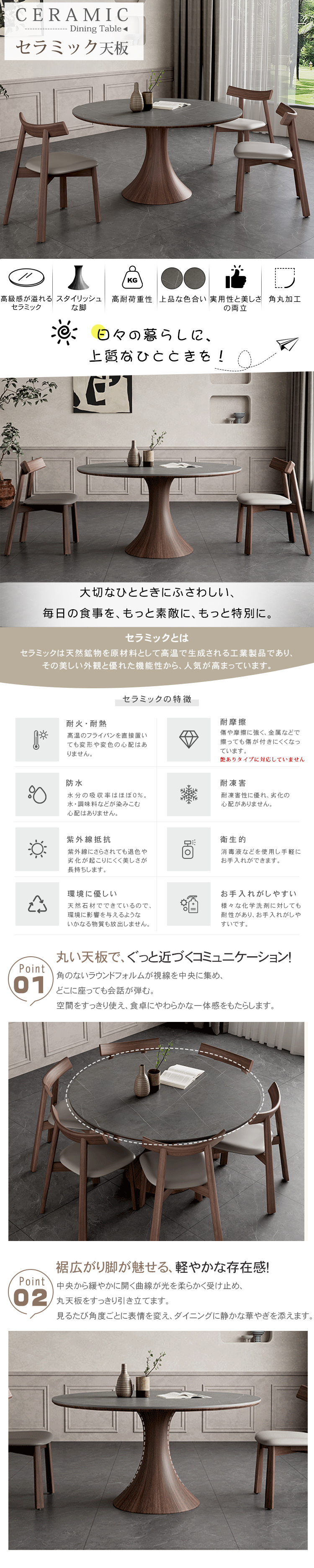 丸ダイニングテーブル セラミック 白 アッシュ材 無垢材 幅1.1m 1.2m 1.35m 1.5m