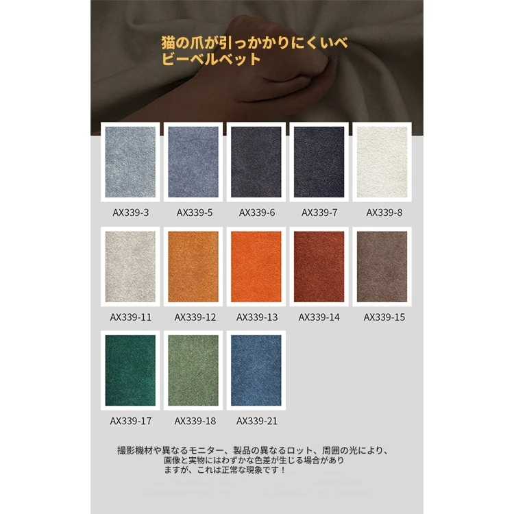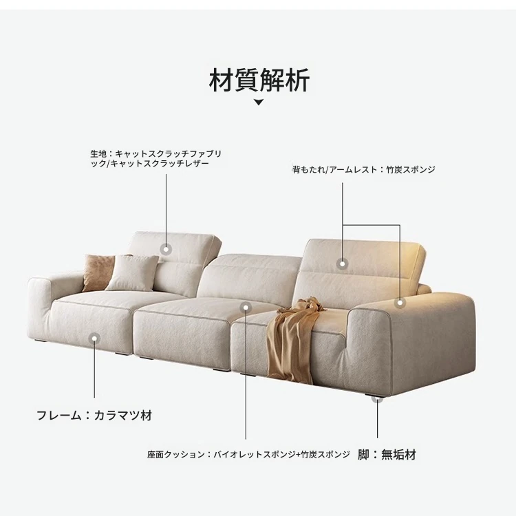 | サイズ | オットマン 単品(70×60cm ), 1人掛け 幅108cm, 2人掛け 幅218cm, 2-3人掛け 幅248cm, 3人掛け 幅278cm, 3-4人掛け 幅298cm, 4人掛け 幅318cm, 4-5人掛け 幅348cm, 幅278cm カウチ左側, 幅358cm カウチ左側 | ||