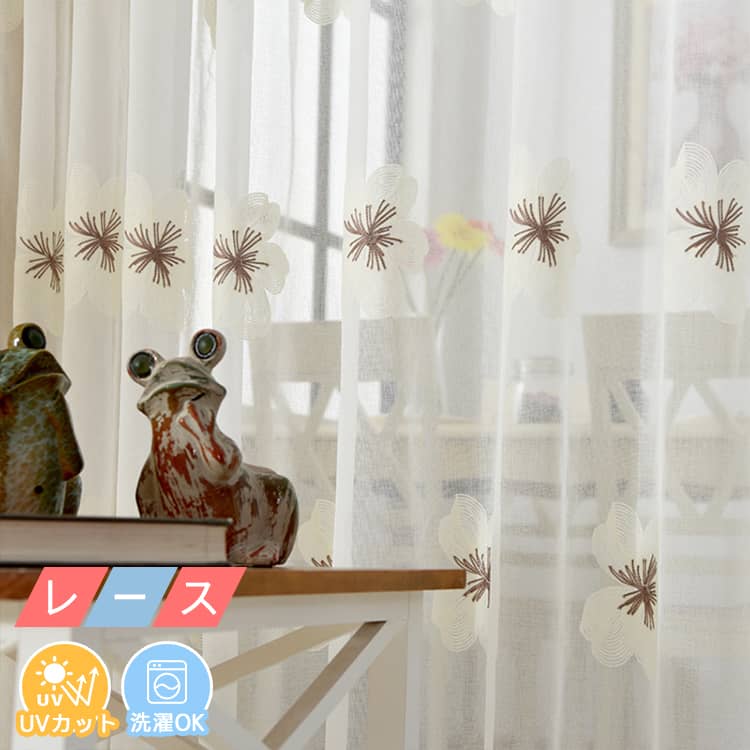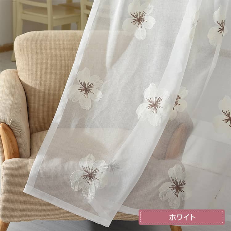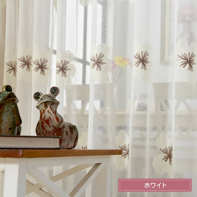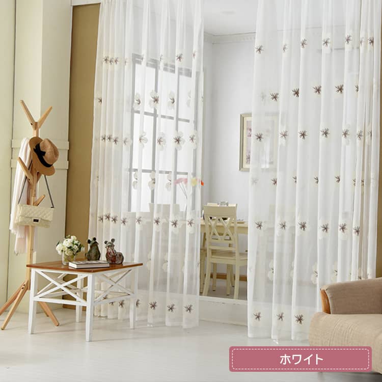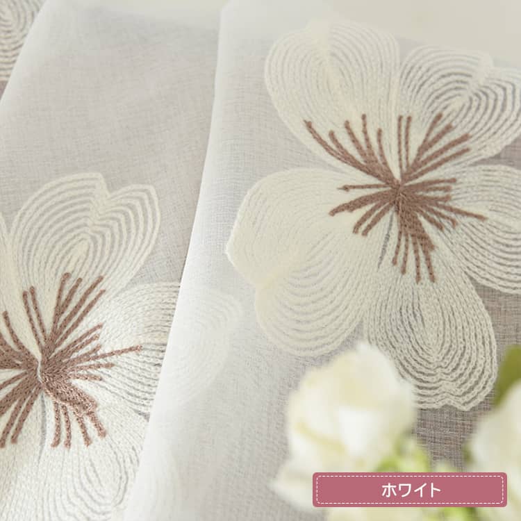 大人ガーリーの小花の刺繍を施したレースカーテン。