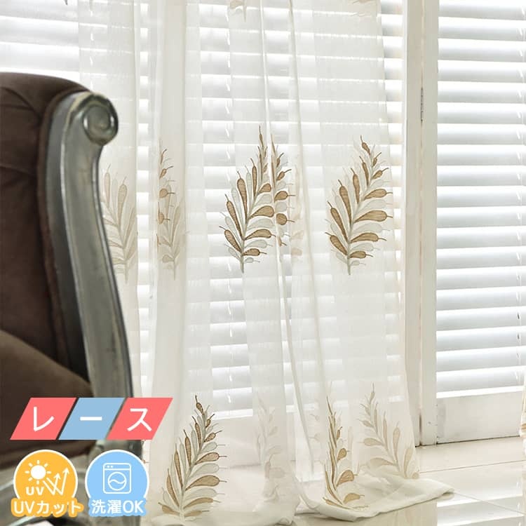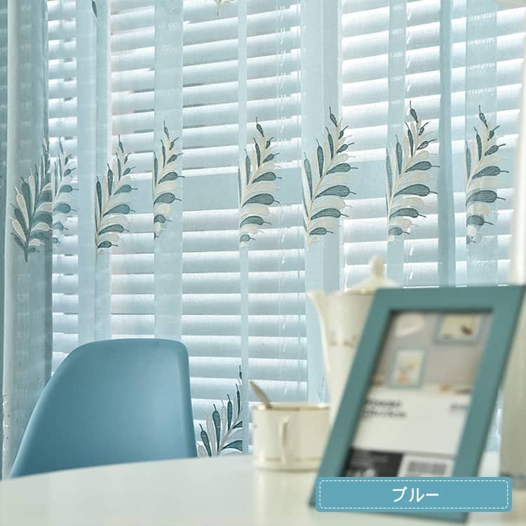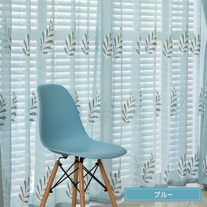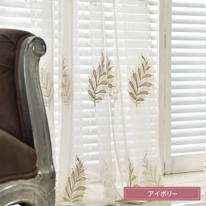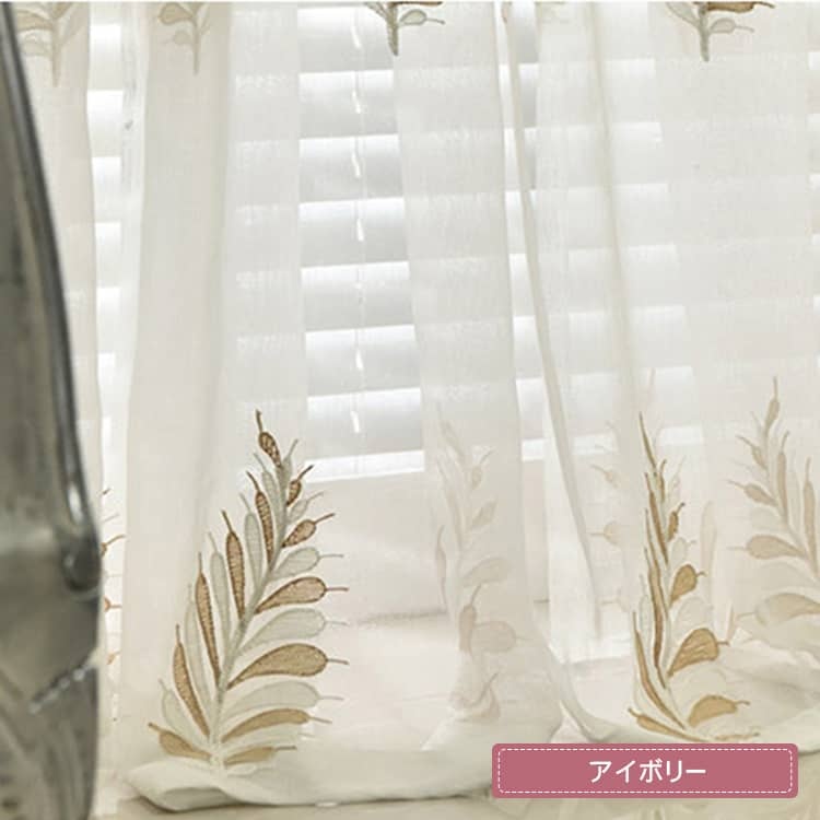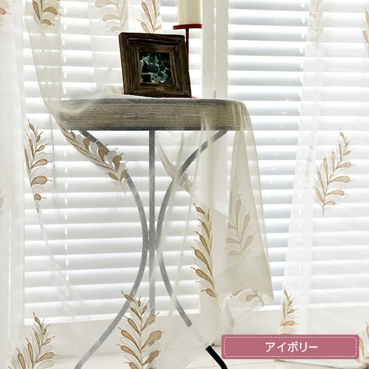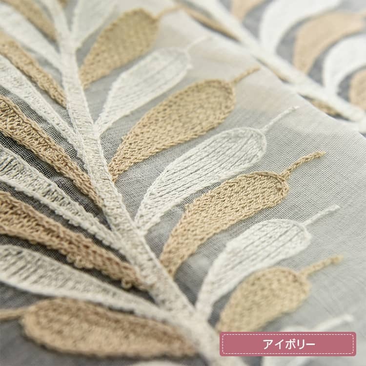 ゆらゆらむぎモチーフの刺繍を施したレースカーテン。