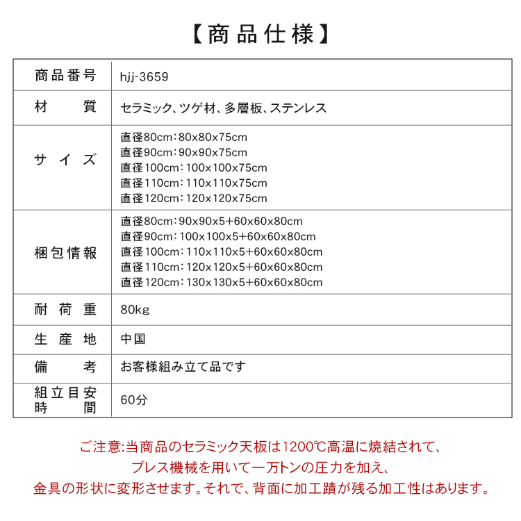 直径80cm, 直径90cm, 直径100cm, 直径110cm, 直径120cm |