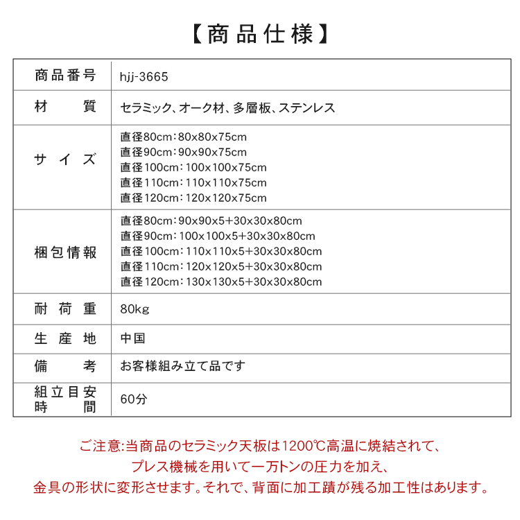 直径80cm, 直径90cm, 直径100cm, 直径110cm, 直径120cm |