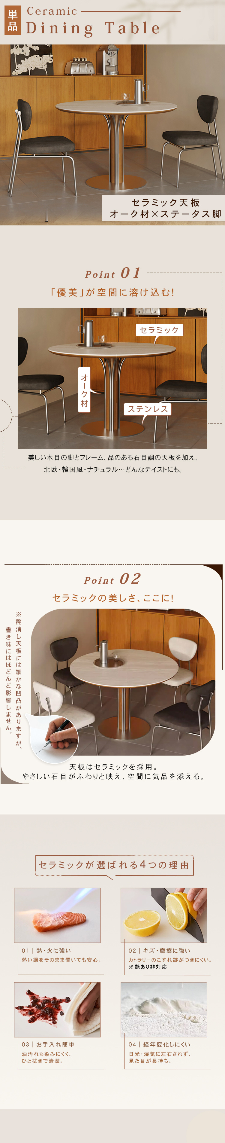 | 材質 | セラミック、オーク、多層板、ステンレス | ||