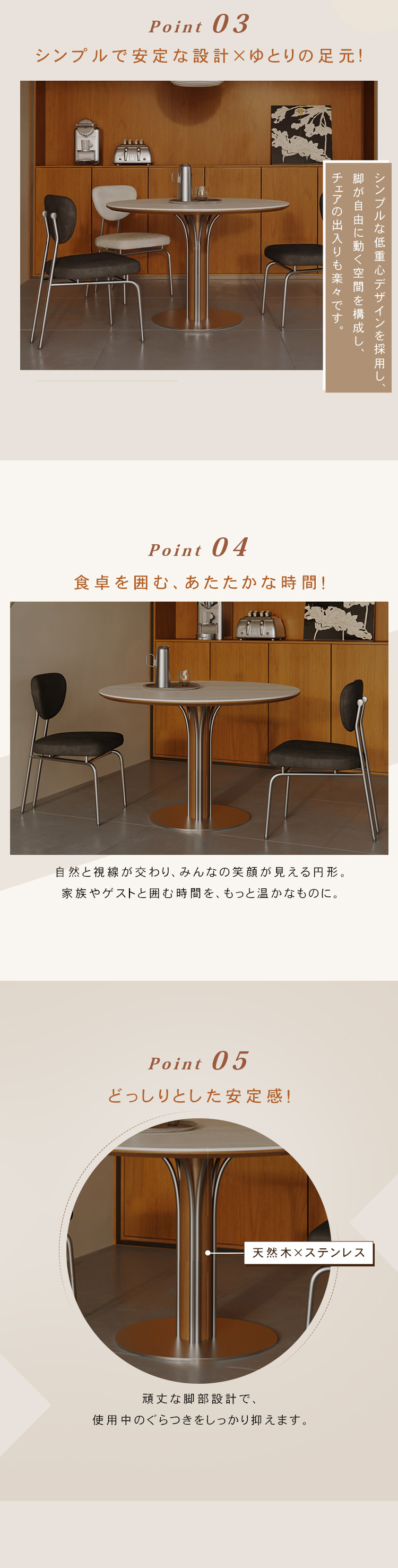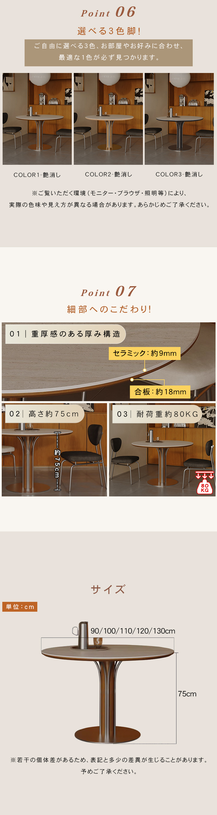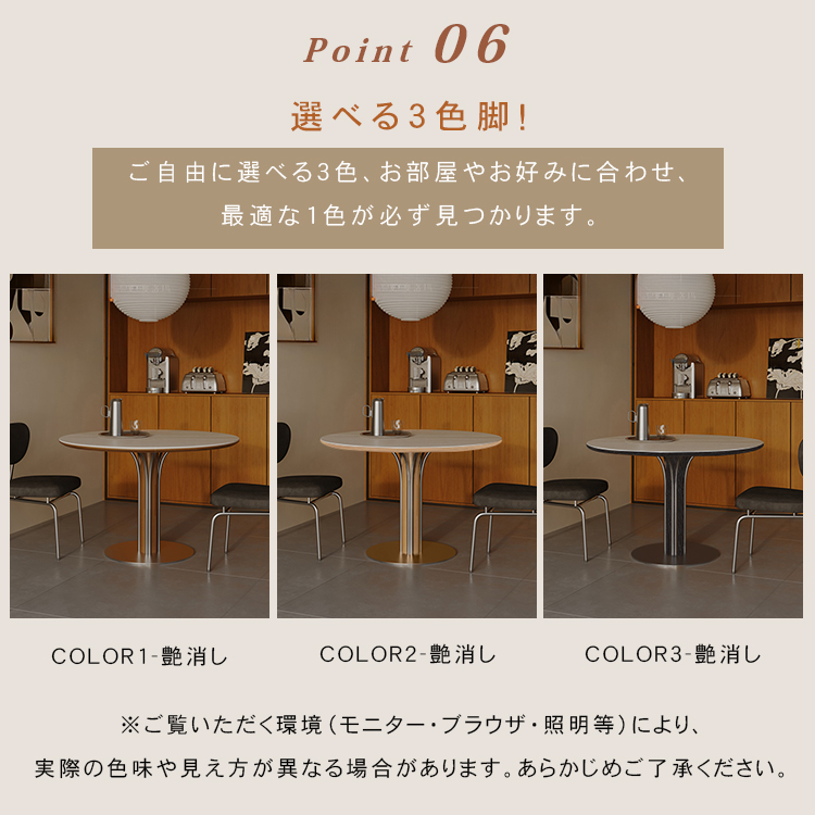 | サイズ | 直径90cm ダークブラウン脚, 直径90cm ブラウン脚, 直径90cm ブラック脚, 直径100cm ダークブラウン脚, 直径100cm ブラウン脚, 直径100cm ブラック脚, 直径110cm ダークブラウン脚, 直径110cm ブラウン脚, 直径110cm ブラック脚, 直径120cm ダークブラウン脚, 直径120cm ブラウン脚, 直径120cm ブラック脚, 直径130cm ダークブラウン脚, 直径130cm ブラウン脚, 直径130cm ブラック脚 | ||