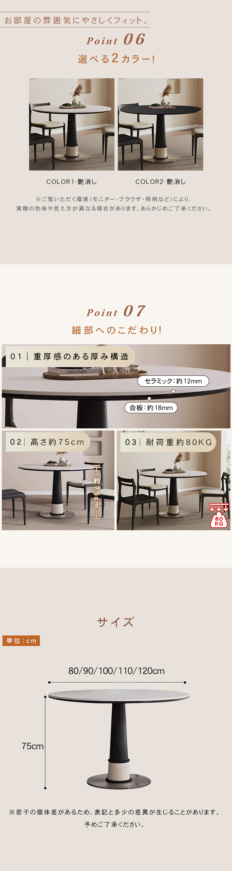 | サイズ | 直径80cm, 直径90cm, 直径100cm, 直径110cm, 直径120cm | ||
