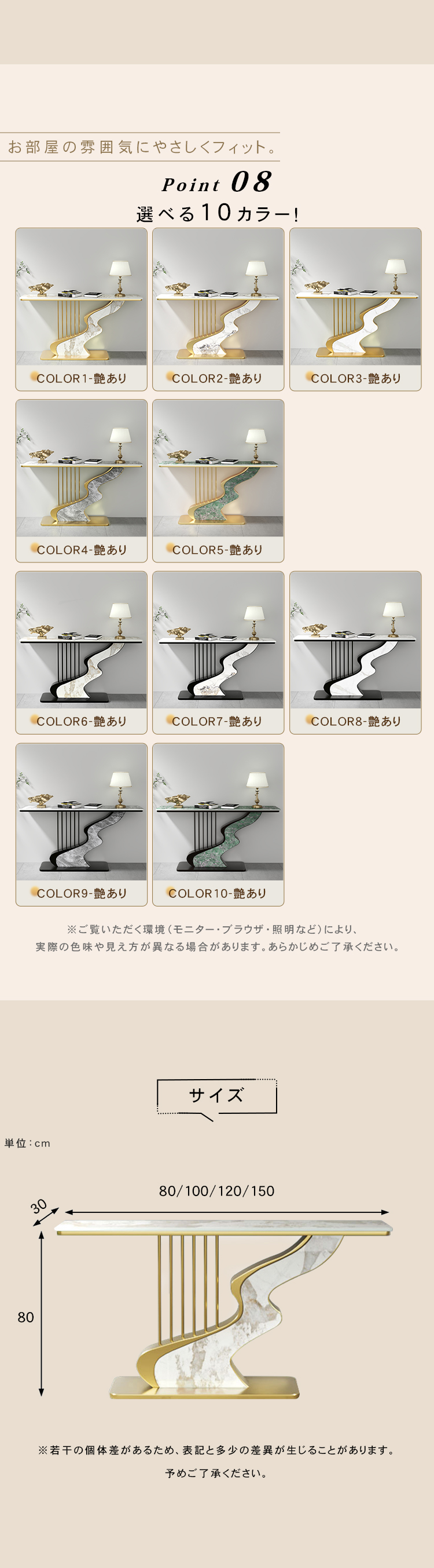 80×30×80cm ゴールド脚, 100×30×80cm ゴールド脚, 120×30×80cm ゴールド脚, 150×30×80cm ゴールド脚, 80×30×80cm ブラック脚, 100×30×80cm ブラック脚, 120×30×80cm ブラック脚, 150×30×80cm ブラック脚 |