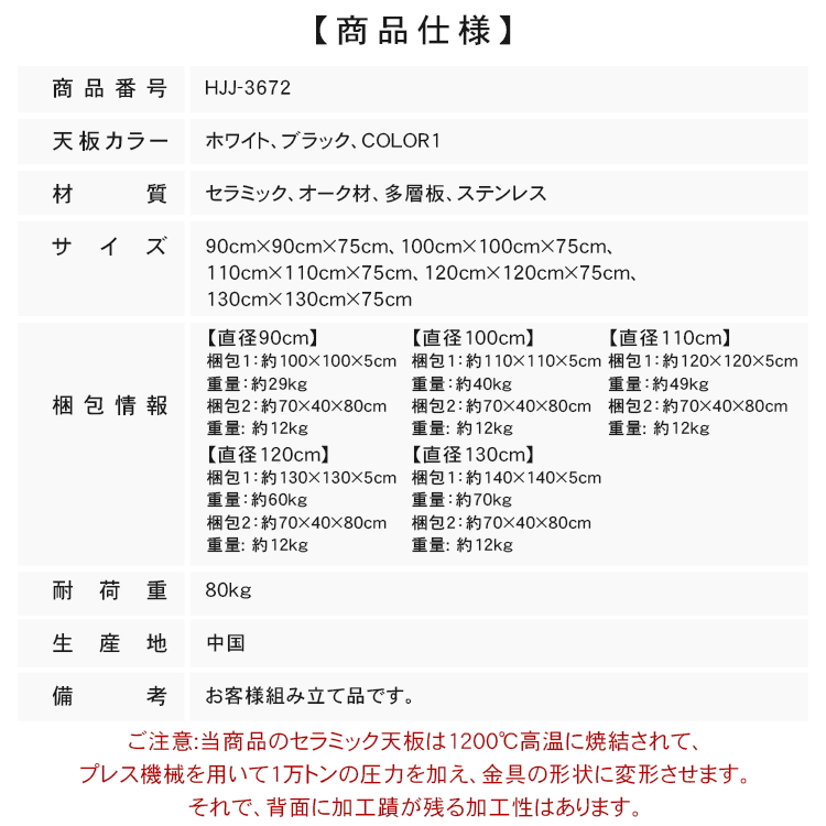 直径90cm, 直径100cm, 直径110cm, 直径120cm, 直径130cm |