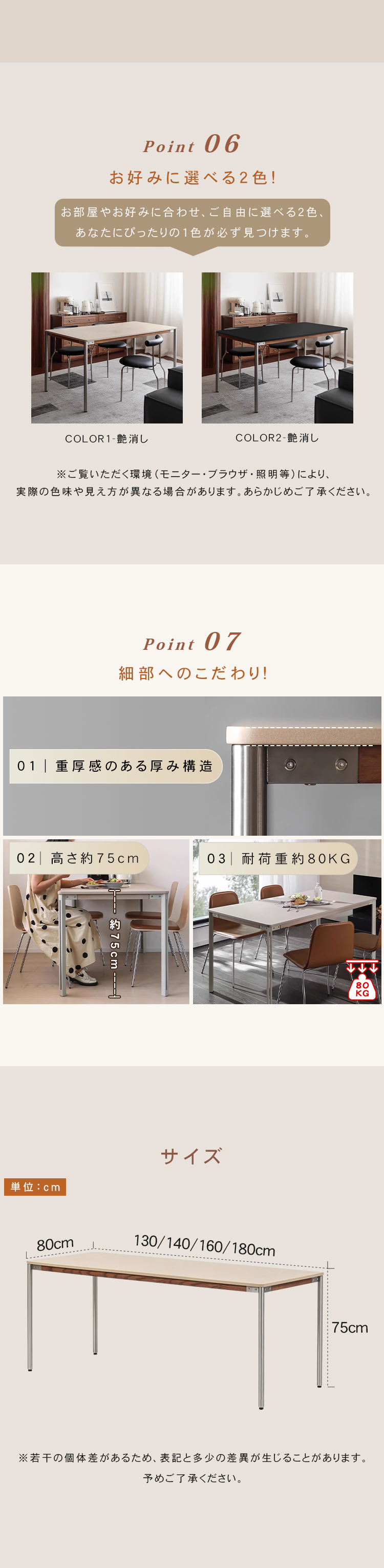 | サイズ | 130×80×75cm, 140×80×75cm, 160×80×75cm, 180×80×75cm | ||