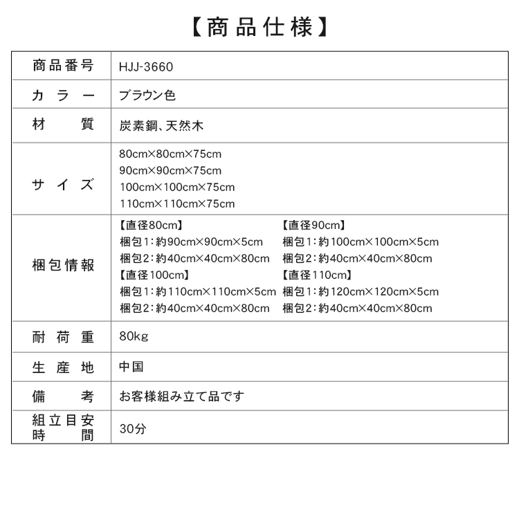 直径80cm, 直径90cm, 直径100cm, 直径110cm |