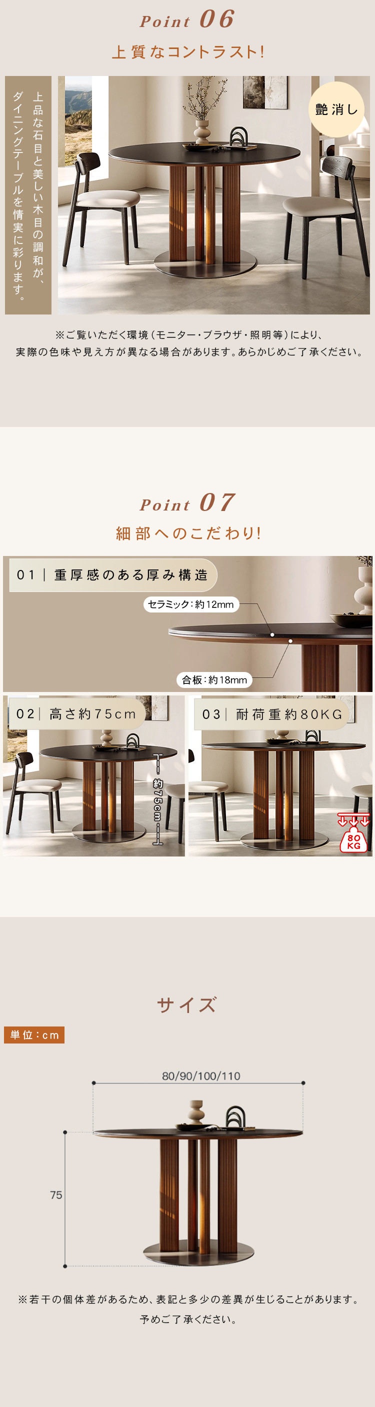 直径80cm, 直径90cm, 直径100cm, 直径110cm, 直径120cm |