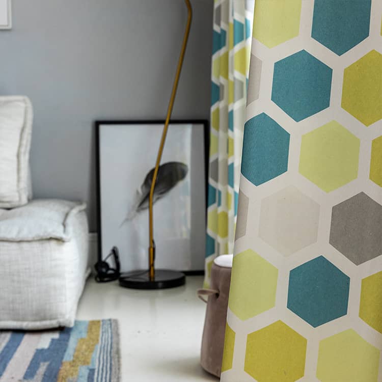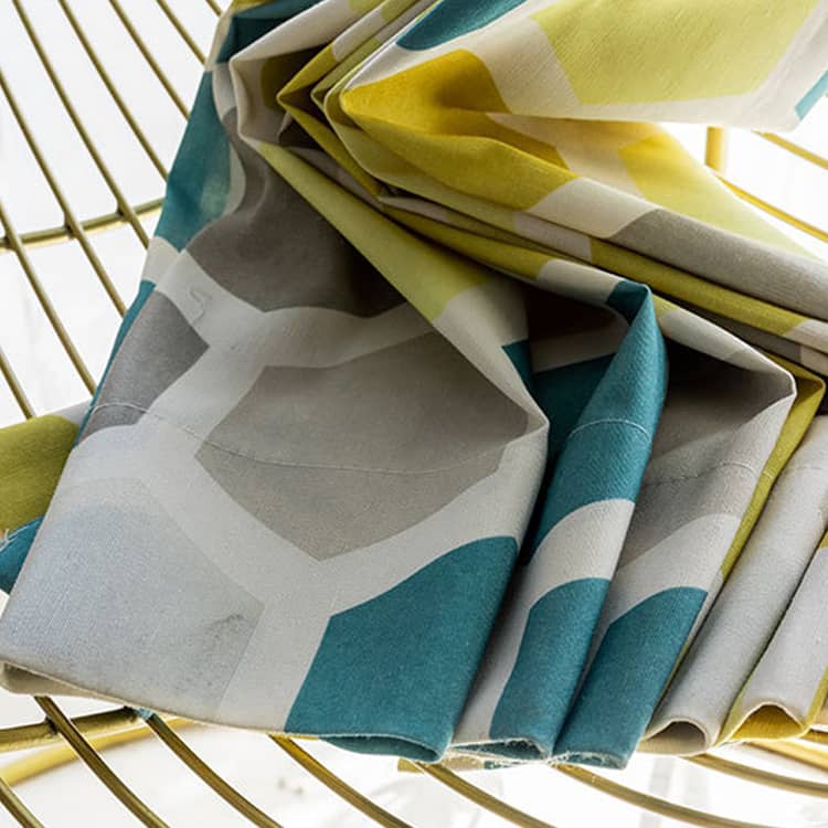 アップルグリーン、ターコイズブルーとグレーの組み合わせがやわらかくて気持ちよい雰囲気にしてくれます。