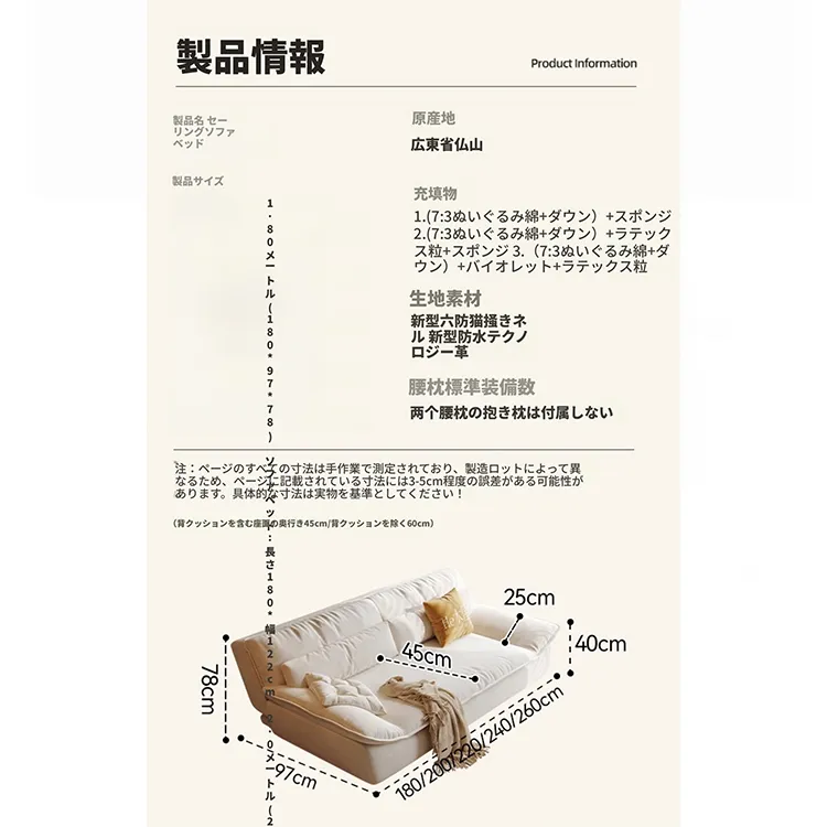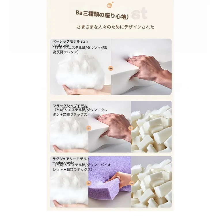 | 材質 | エアレザー、ウレタン、ダウン、パイン、金属、シリコンフィル | ||