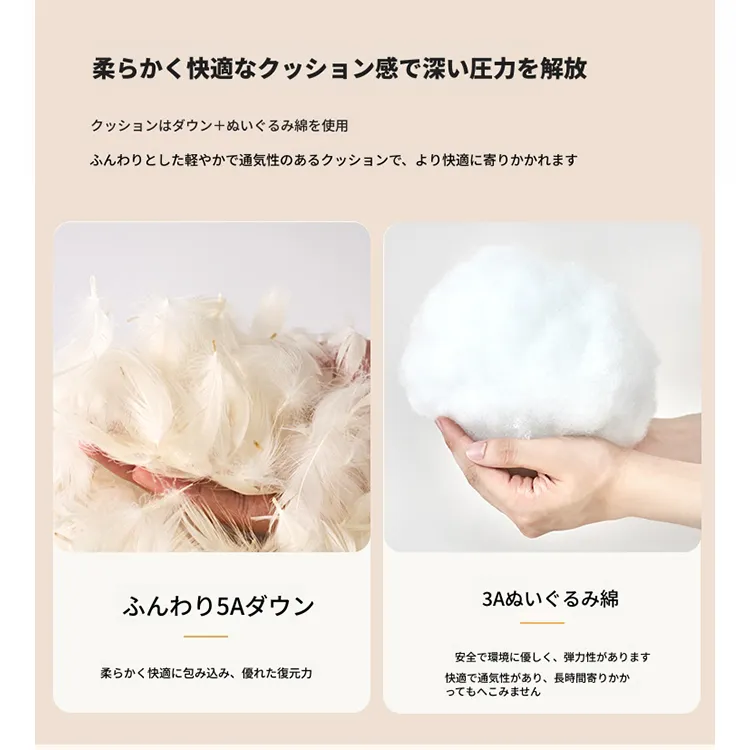 | 材質 | エアレザー、ウレタン、ダウン、ステンレス、シリコンフィル | ||