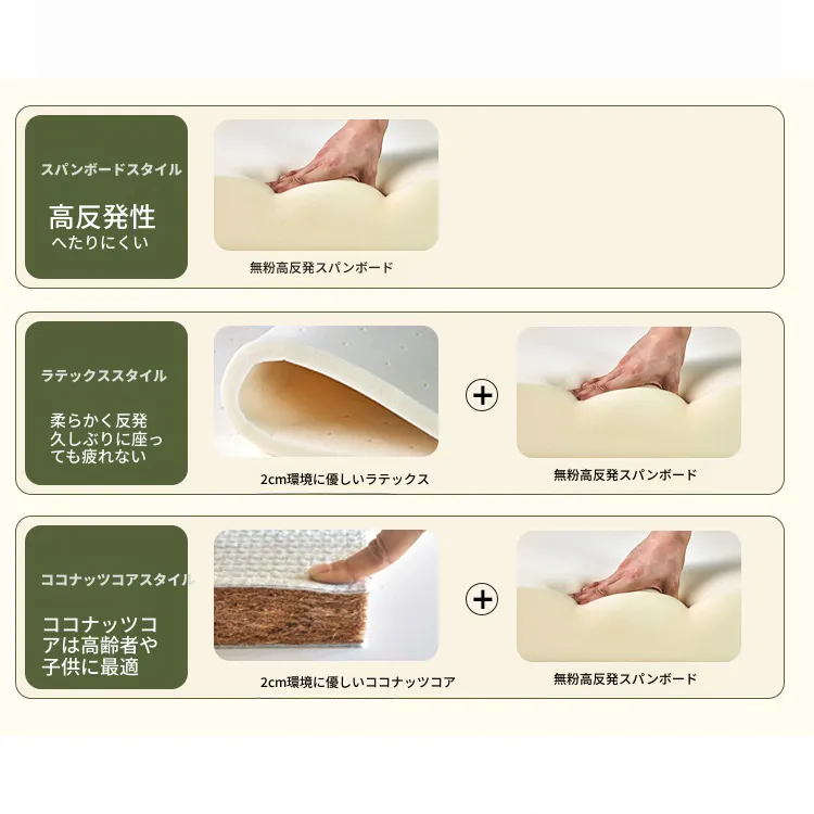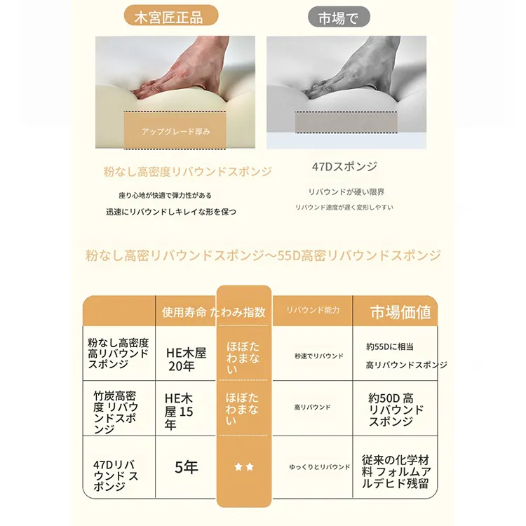| 材質 | ポリエステル、炭素鋼、ウレタン、無垢材 | ||
