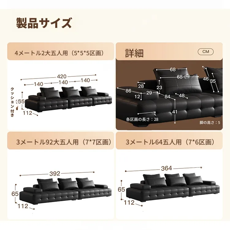 | サイズ | オットマン, 幅112cm, 幅252cm, 幅280cm, 幅308cm, 幅336cm, 幅364cm, 幅392cm, 幅420cm | ||