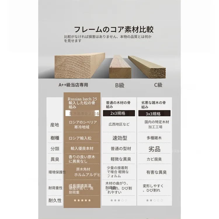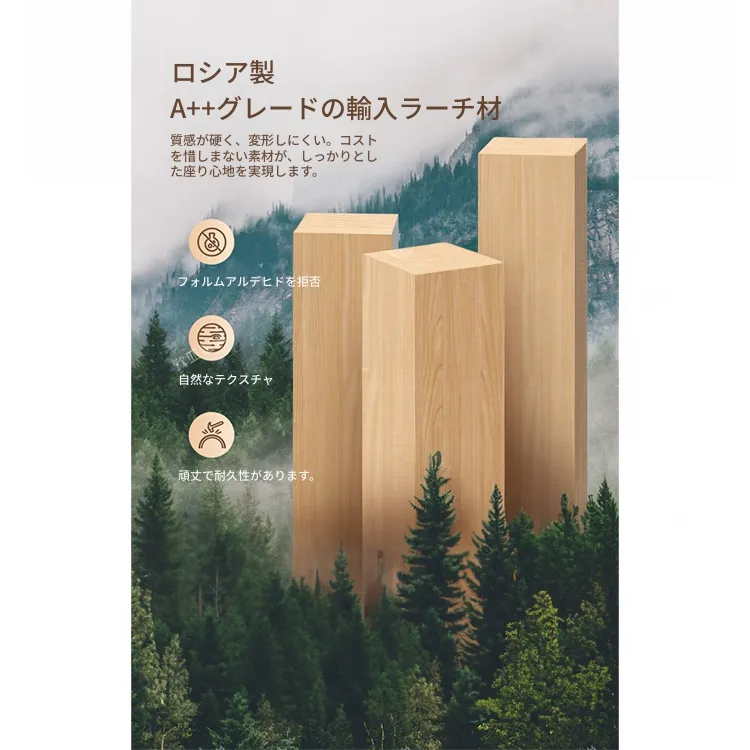 | 材質 | エアレザー、無垢材、パイン、炭素鋼、シリコンフィル、ダウン | ||