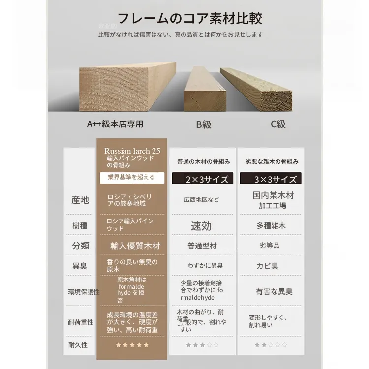 | 材質 | エアレザー、オーク、無垢材、パイン、炭素鋼、シリコンフィル、ダウン | ||