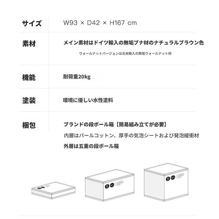 | 梱包 | 93cm: 梱包1: 幅 99.0cm×奥行き 48.0cm×高さ 173.0cm 5.0kg | ||