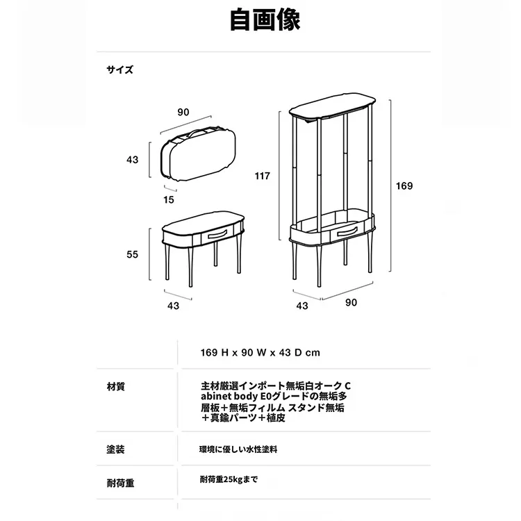 | 材質 | オーク、多層板、無垢材、銅、本革 | ||