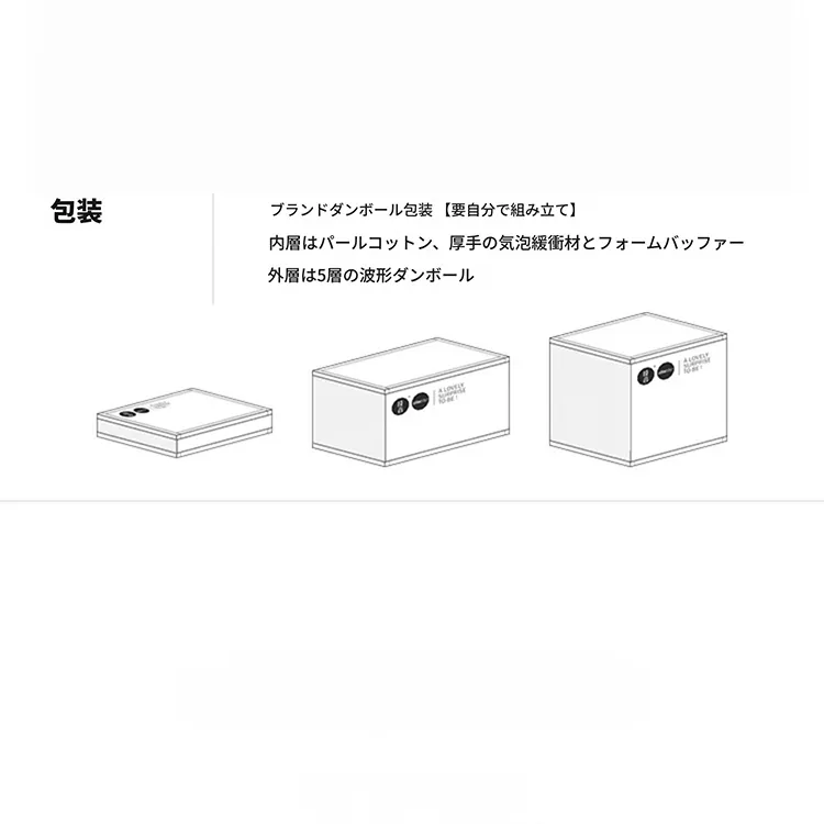 | 梱包 | 90cm: 梱包1: 幅 96.0cm×奥行き 49.0cm×高さ 61.0cm 25.0kg | ||