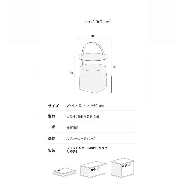 | 梱包 | 43cm: 梱包1: 幅 49.0cm×奥行き 49.0cm×高さ 75.0cm 4.0kg | ||