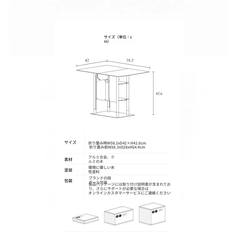 | 梱包 | 58cm: 梱包1: 幅 65.0cm×奥行き 48.0cm×高さ 49.0cm 12.0kg | ||