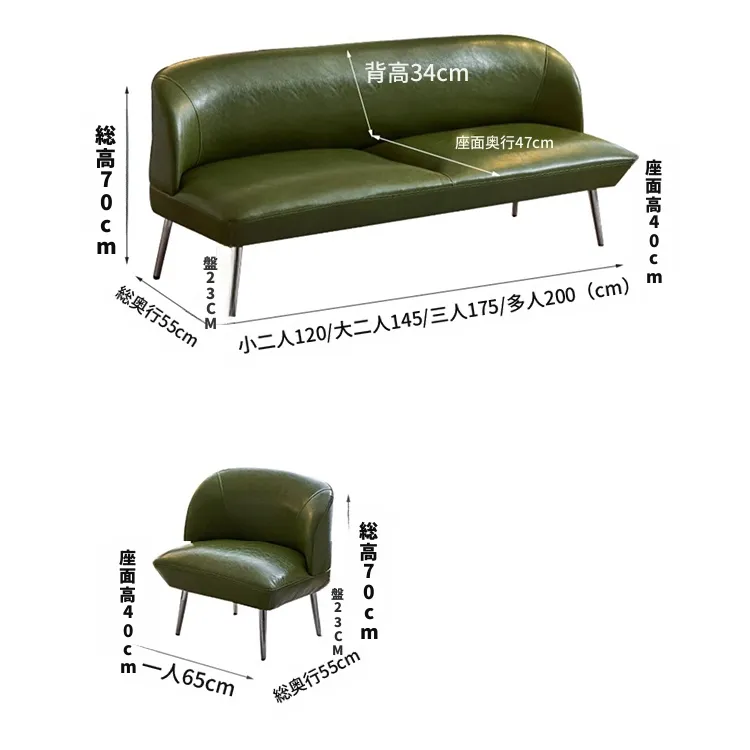 1人掛け幅65cm, 2人掛け幅120cm, 2人掛け幅145cm, 3人掛け幅175cm, 4人掛け幅200cm |