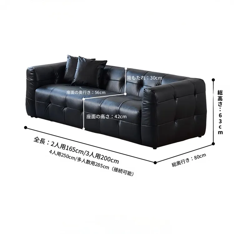 1人掛け幅100cm, 2人掛け幅165cm, 3人掛け幅200cm, 4人掛け幅250cm, 4~5人掛け幅285cm |
