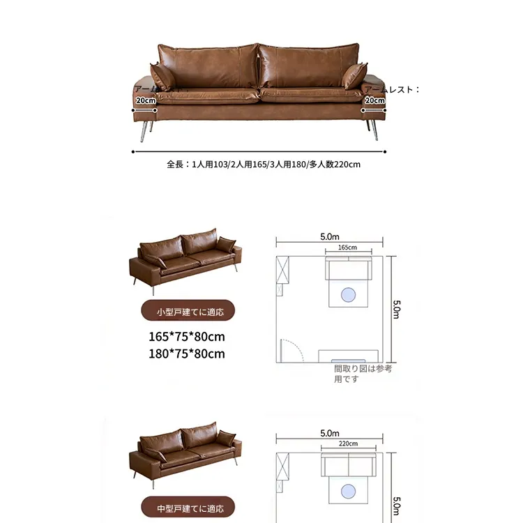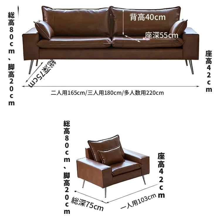 1人掛け 幅103cm, 2人掛け 幅165cm, 3人掛け 幅180cm, 幅200cm |