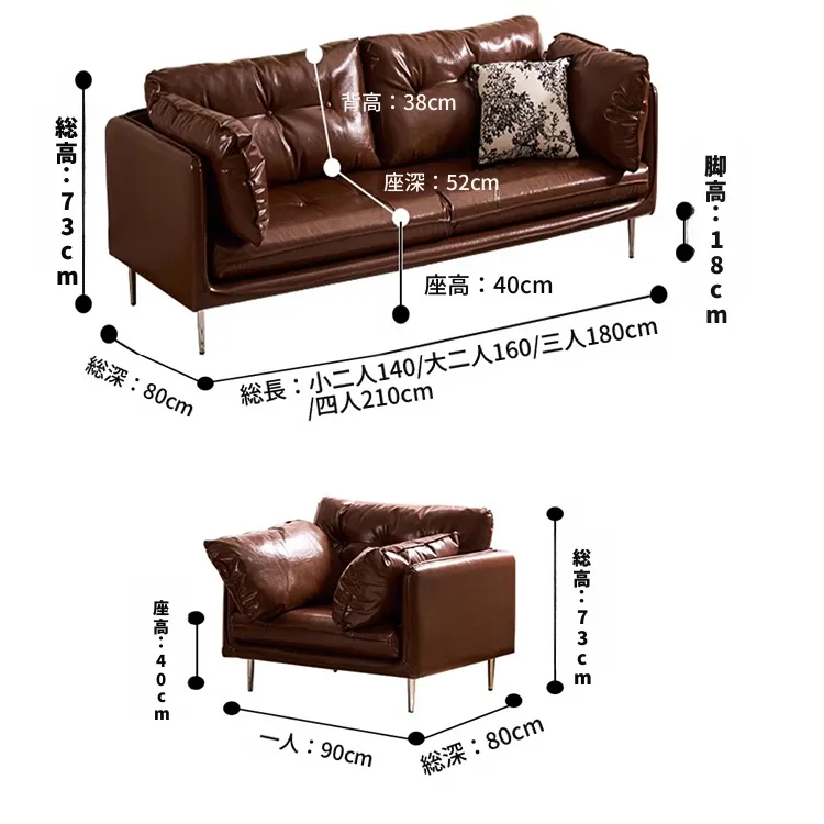 1人掛け 幅90cm, 2人掛け 幅140cm, 2人掛け 幅160cm, 3人掛け 幅180cm, 4人掛け 幅210cm |