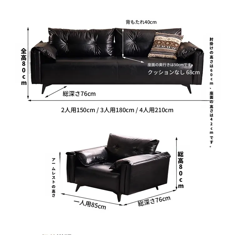 1人掛け 幅85cm, 2人掛け 幅150cm, 3人掛け 幅180cm, 4人掛け 幅210cm |
