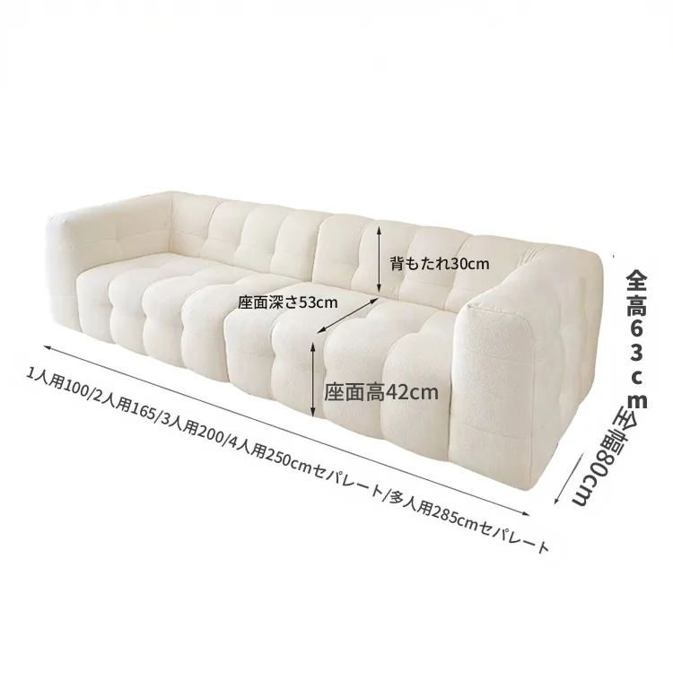 1人掛け 幅100cm, 2人掛け 幅165cm, 3人掛け 幅200cm, 4人掛け 幅250cm, 4~5人掛け 幅285cm |