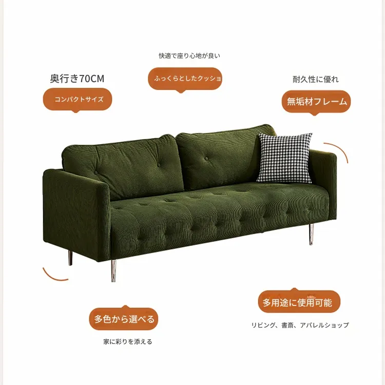無垢材、ウレタン、シリコンフィル、金属、コーデュロイ |
