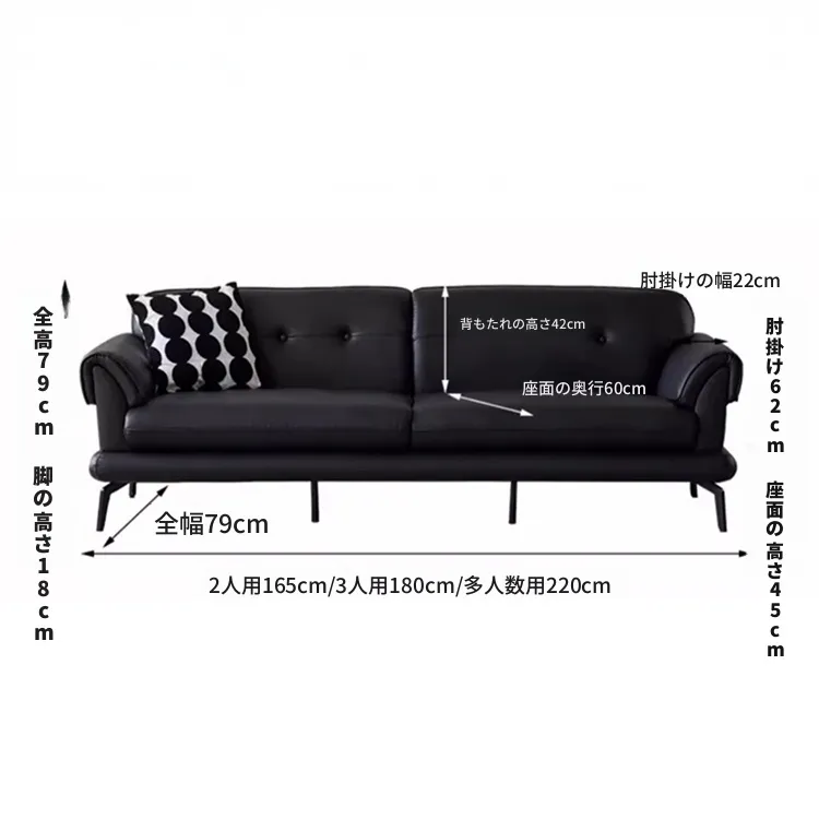 1人掛け 幅100cm, 2人掛け 幅165cm, 3人掛け 幅180cm, 4人掛け 幅220cm, 4~5人掛け 幅280cm |