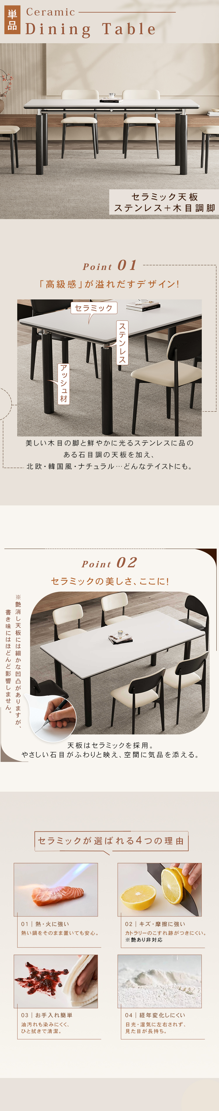 セラミック、アッシュ材、多層板、ステンレス |
