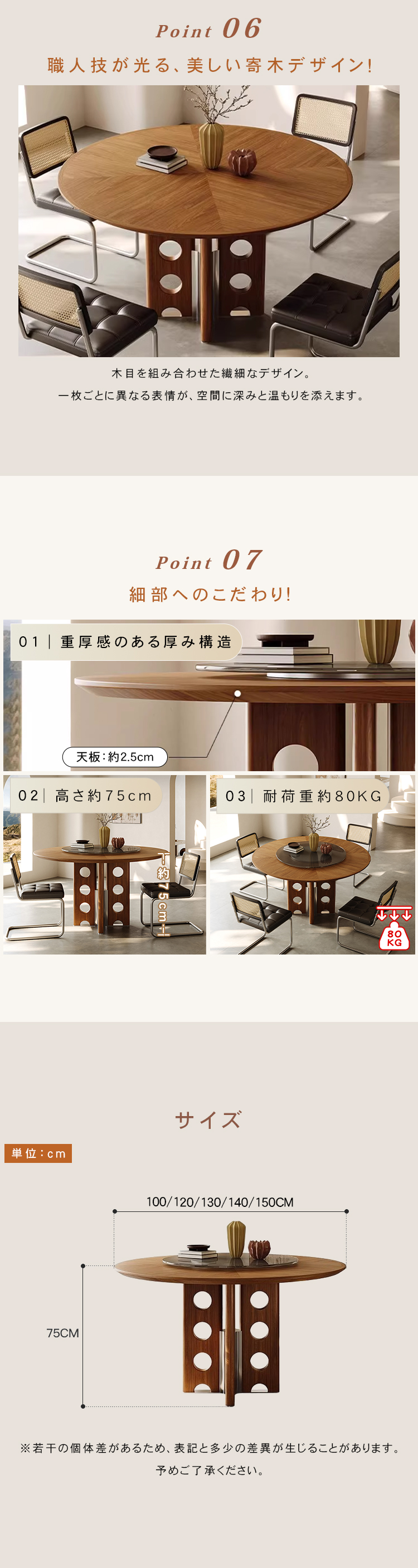 直径100cm, 直径120cm, 直径130cm, 直径140cm, 直径150cm |