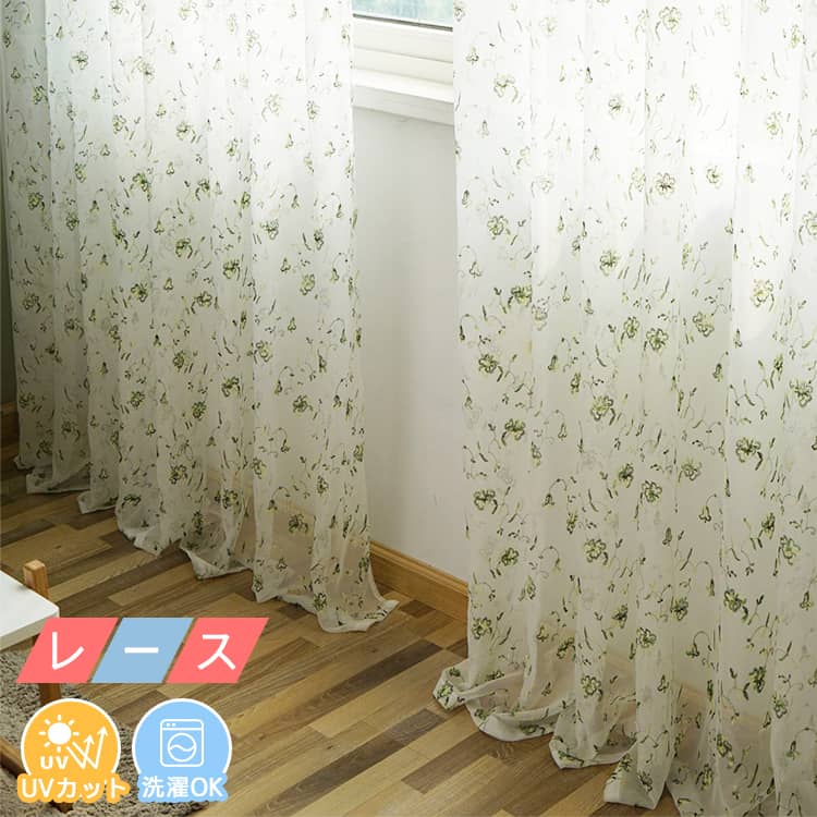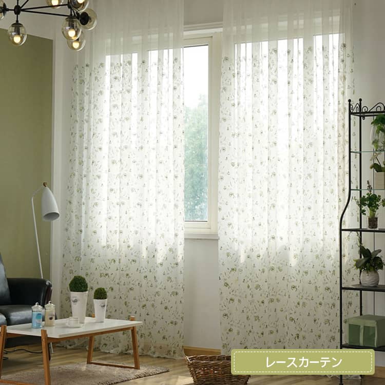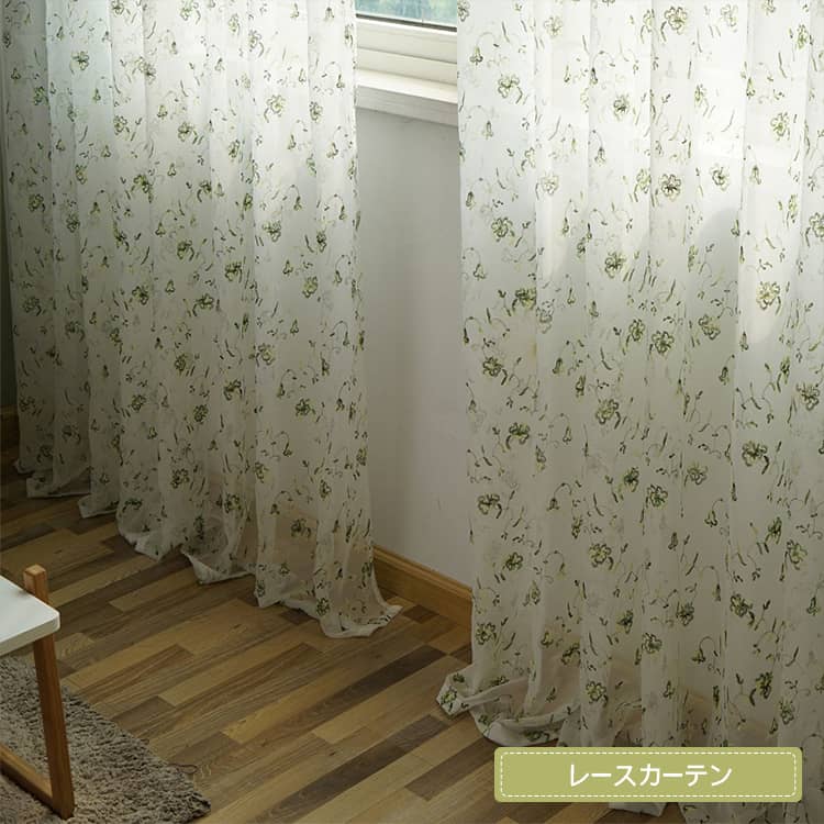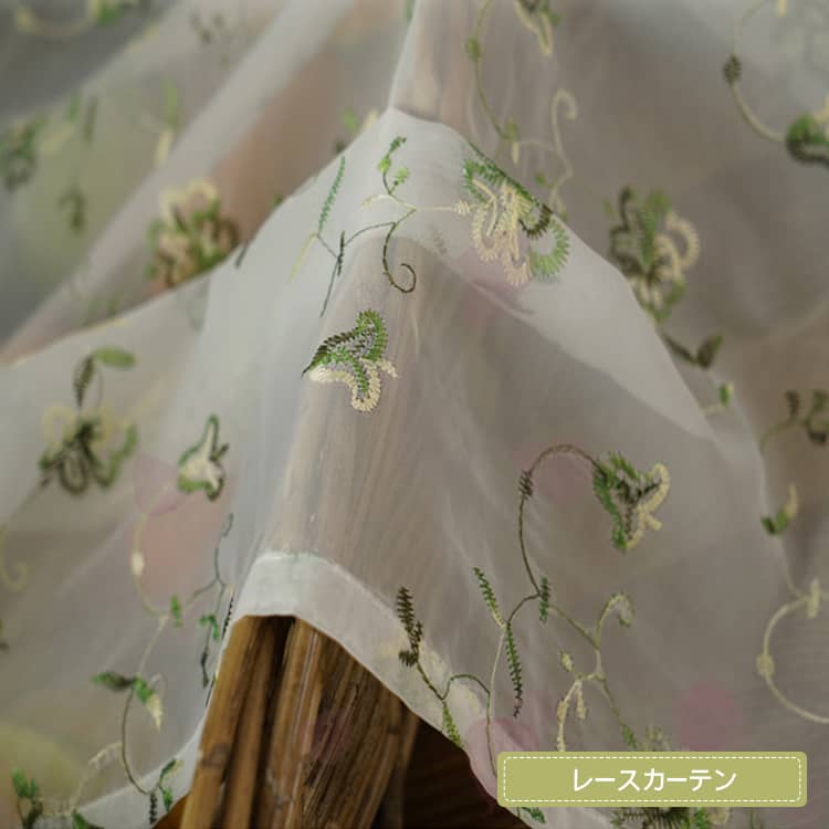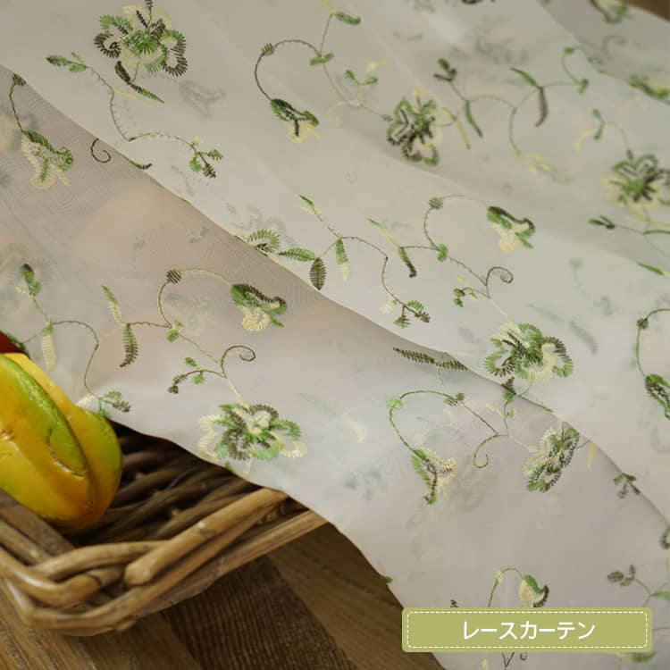透け感が美しい生地に可愛い花を刺繍したエンブロイダリーレースカーテン。
