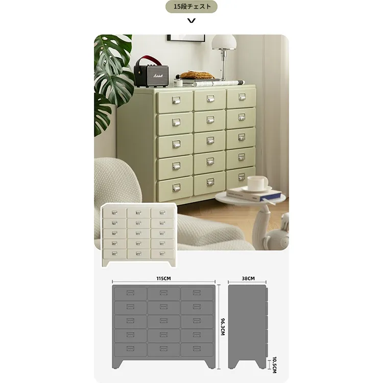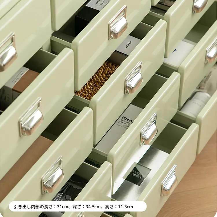 幅40cm 引出し2杯, 幅40cm 引出し3杯, 幅40cm 引出し5杯, 幅120cm引出し6杯, 幅78cm引出し10杯, 幅115cm引出し15杯, 幅80cm引出し5杯, 幅40cm引出し2杯+扉付き, 幅62cm引出し3杯+扉付き, 幅78cm引出し6杯+扉付き, 幅75cm扉付き |
