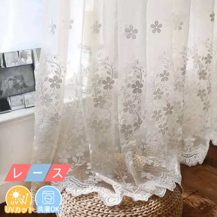 スカラップ状の裾から伸びる小花柄がエレガントな雰囲気の刺繍レース。