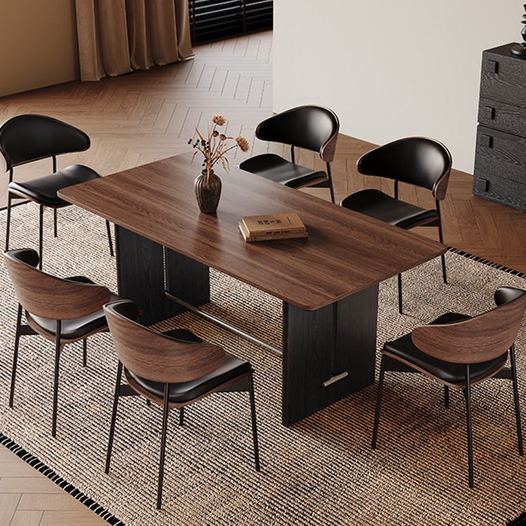 軽奢スタイル 実木ダイニングテーブル 長方形 イタリア極簡 セラミック天板 中空スクエア脚