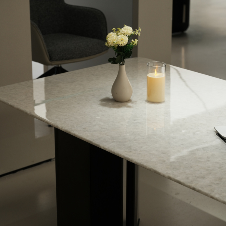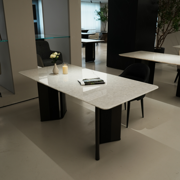 天然大理石 ホワイトクリスタルテーブル 高級モダンデザイン 白×ブラック脚 ラグジュアリーダイニング家具