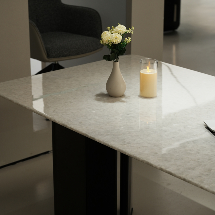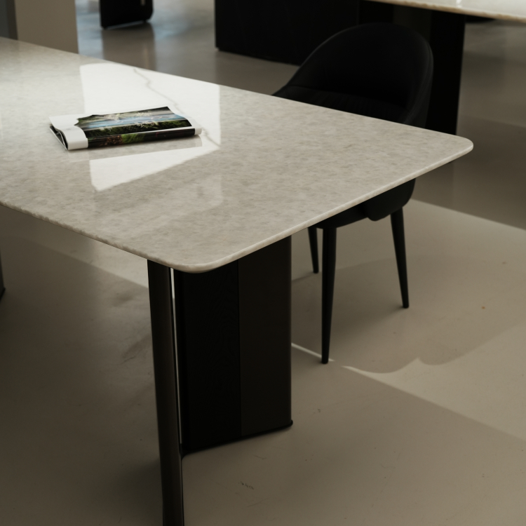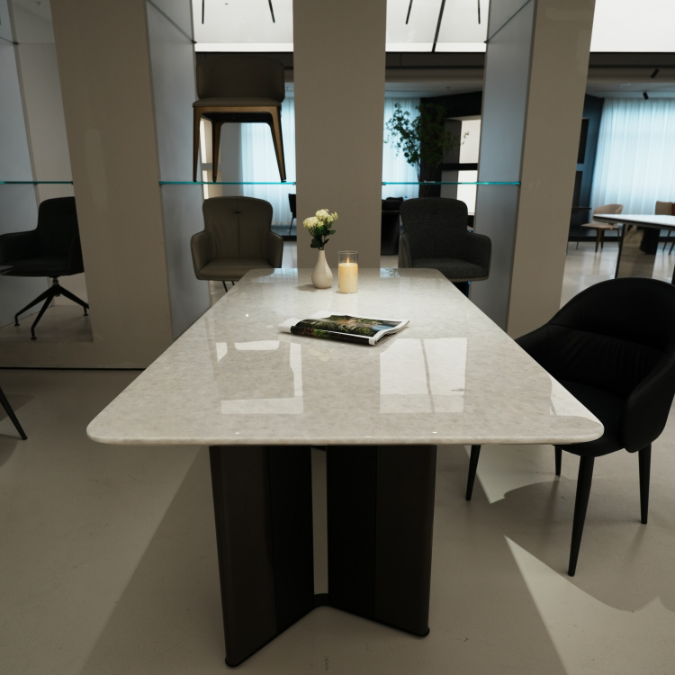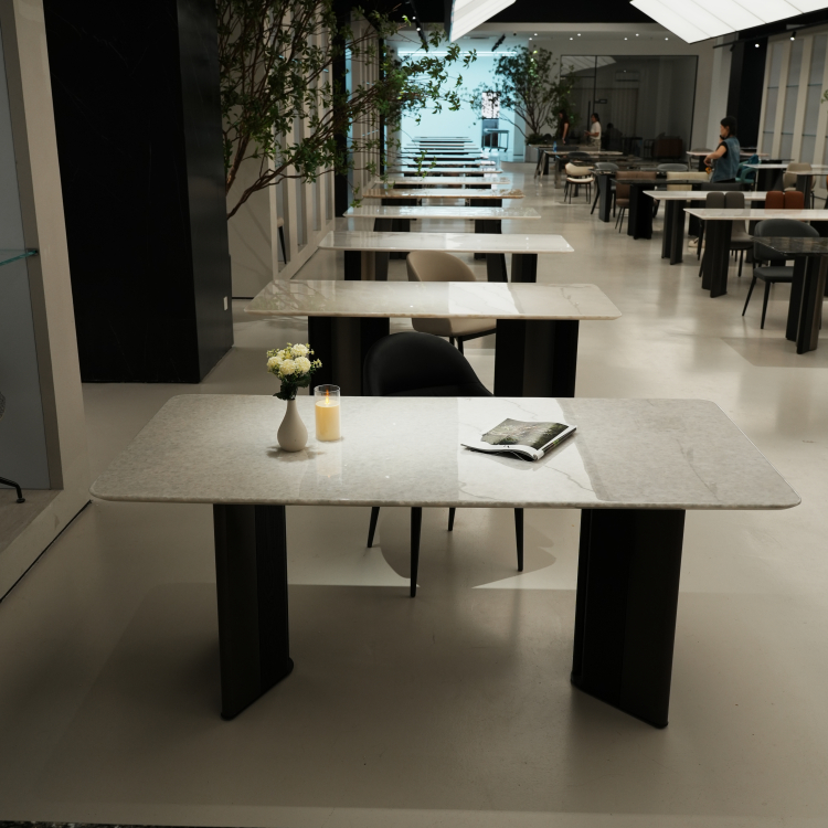 天然大理石 ホワイトクリスタルテーブル 高級モダンデザイン 白×ブラック脚 ラグジュアリーダイニング家具 jrjj-A22